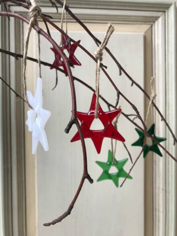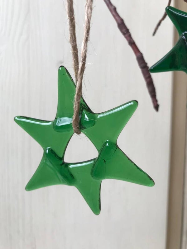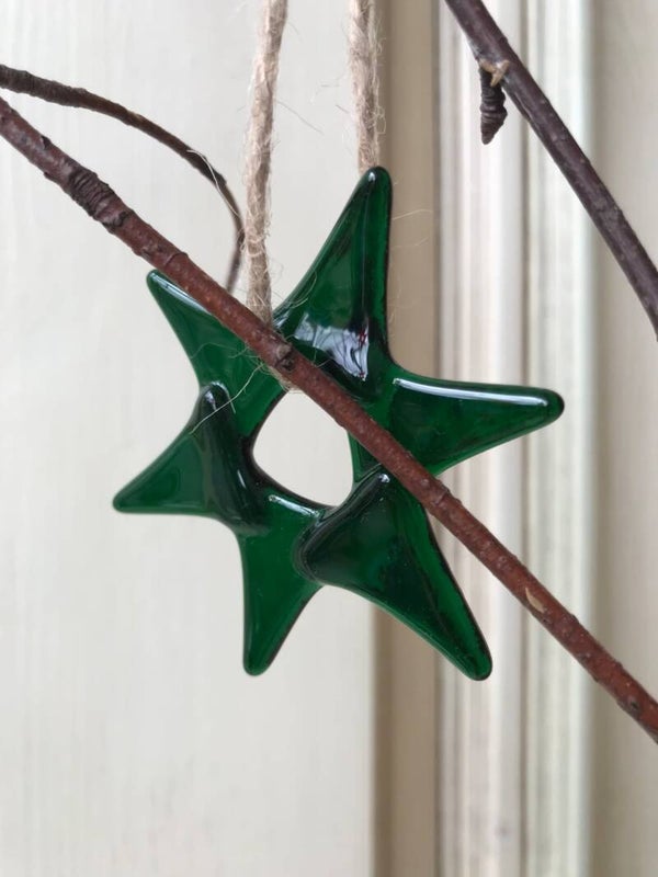 Leuke kleine kerstster met de hand gemaakt van glas. Leuk om overal neer te hangen, in de kerstboom of voor het raam, in een schaaltje tussen de kaarsjes of aan een slinger.